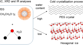 In this study, polyethylene glycol (PEG)-modified dendrimers with different PEG molecular weights and PEG bound ratios were synthesized. Because the amount of intermediate water, which moderately interacts with materials, is known to be related to biocompatibility, we investigated the hydration and biodistribution of PEG-modified dendrimers with different structures. Dendrimers modified with longer and denser PEG chains had higher intermediate water content (WIM) and showed an increased tumor/liver ratio after the intravenous injection. These findings highlight hydration as a key physicochemical factor governing biodistribution, which is useful for optimizing nanocarriers in drug delivery systems.
