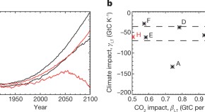 • A study using a newly developed framework shows how future peak temperature is related to cumulative emissions of long-lived greenhouse gases such as carbon dioxide and sustained emissions of shorter-lived species such as methane, and suggests an approach for limiting future warming to 2 °C above pre-industrial levels.
