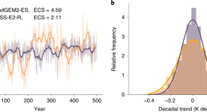 • Projections of temperature often focus on maximum warming levels, with variability less often considered. Investigating decadal variability in models shows those with higher equilibrium climate sensitivity also have a higher chance of super warming, and hiatus periods.