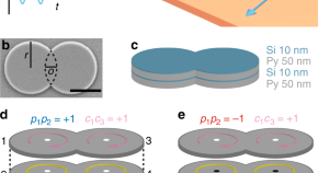Spin waves are promising candidates as a building block for future magnonic devices. The authors present a combined numerical and experimental study of spin-wave interferences in stacks of magnetic vortices that are efficient spin-wave emitters in the nanometre regime.