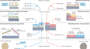 This Review systematically compares 2DMs and silicon metal–oxide–semiconductor field-effect transistors technologies in the integrated circuits engineering process and presents potential solutions for channel, contact and dielectric engineering using 2DM to address the scaling challenges faced by a silicon-based device at the advanced tech node.