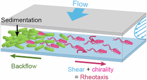 In confined environments, such as soil and the gut, flow constrains the spatial organization of bacterial communities, impacting their ecological success. Here, the authors reveal that in a community of mixed motile and non-motile Escherichia coli in channels under Poiseuille flow, the motile bacteria induce segregation of non-motile cells, leading to asymmetric biofilm formation, with implications for understanding bacterial colonization dynamics.