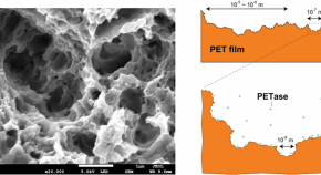 • The enzymatic degradation of amorphous poly (ethylene terephthalate)(PET) films by a PET-degrading enzyme was analyzed using SAXS, WAXD, SEM, X-CT, and weight-loss measurements. FAST-PETase induced the emergence of hierarchical boring structures ranging from 10⁻⁵ m to 10⁻⁸ m on PET, revealing that enzymatic degradation proceeds through interfacial interactions within the evolving porous surface layer. This study contributes essential knowledge toward the sustainable use of plastics, responding to growing global concerns over microplastic pollution and the scarcity of fossil resources.