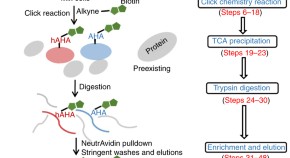 This protocol describes a proteomics approach for quantifying newly synthesized proteins (NSPs). NSPs are pulse-labeled with the methionine analog AHA or a heavy-isotope version of it, followed by AHA-peptide enrichment and LC-MS/MS analysis.
