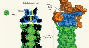 The 26S proteasome is a multisubunit complex that selectively degrades ubiquitin conjugated proteins. Two studies (this Article and the Letter Dikic doi:10.1038/nature06924) show that a known component of the proteasome, Rpn13, functions as a novel ubiquitin binding receptor, and structural studies reveal a novel mode of ubiquitin recognition. Rpn13 is also a receptor for a deubiquitinating enzyme, suggesting a linkage between ubiquitin chain recognition and disassembly.