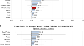 Climate change is expected to have impacts on human mortality, e.g. through increases in heat waves. Here, the author proposes a new metric to account for excess deaths from additional CO2 emissions, which allows to assess the mortality impacts of marginal emissions and leads to a substantial increase in the social costs of carbon.