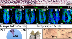 • Cell division and stem cell maintenance are tightly linked. Here they show that in the hair follicle an epigenetic mechanism maintains mesenchymal niche dormancy in a highly proliferative microenvironment while repurposing mitogenic signaling to orchestrate the hair cycle clock.