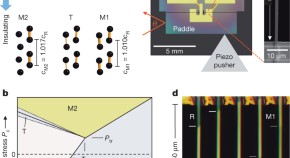 • The precise location of a solid-state triple point, at which three solid phases coexist in thermal equilibrium, has been determined by controlling the stress and temperature in a nanobeam of vanadium dioxide near its metal–insulator transition.