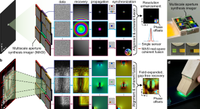 • The authors create a distributed sensor array that achieves optical super-resolution without lenses, using computational synchronization to combine multiple sensors and expand imaging areas 16-fold beyond physical sensor dimensions.