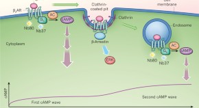 How carvedilol, a β1-blocker, activates β2-adrenoceptors, is unclear. Here, the authors resolve this enigma and show that carvedilol drives all of its detectable cellular β2-adrenoceptor signals by slow and low efficacy G protein activation.