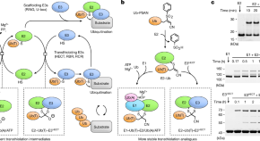 • Structural analyses of analogues of stable ubiquitin transthiolation intermediates with E1, E2 and E3 enzymes reveal a population of intermediate states that provide insights into the directional transfer of ubiquitin between E1, E2 and E3.