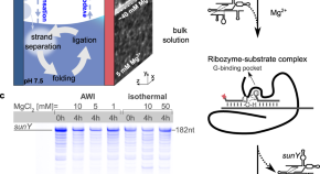 RNA and proteins are two crucial players in the origin of life but while RNA evolved to assemble proteins from amino acids, a significant mirror-symmetric effect of amino acids to trigger the synthesis of RNA was missing. Here, the authors report ambient alkaline conditions where amino acids, without additional chemical activators, promote RNA copolymerisation more than 100-fold, starting from prebiotically plausible ribonucleoside-2′,3′-cyclic phosphates.