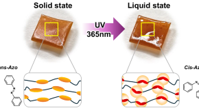 This work shows that the length of flexible spacers in azobenzene (Azo)-based polymers is crucial for achieving room-temperature photoliquefaction (i.e., UV light-induced solid‒liquid phase transition). By adjusting the length of dithiol-functionalized flexible spacers, the melting temperature (Tm) of Azo polymers can be effectively modulated. Incorporating longer spacers decreases the Tm to a temperature achievable by the photothermal effect of Azo molecules, thus enabling photoliquefaction of Azo polymers at room temperature.