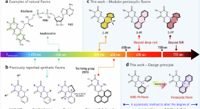 Flavins have redox and optical properties applicable to organic, photochemical, and biochemical research, though tailoring these properties remain challenging. Here, the authors report several flavins exhibiting deep-red and NIR emission, and quasi-reversible oxidation.