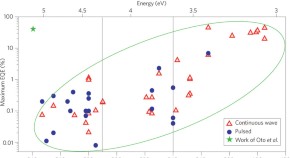 Researchers in Japan have used electron-beam excitation in an AlGaN/AlGaN quantum-well structure to demonstrate the emission of ultraviolet light at record-breaking efficiency, giving hope for the realization of high-power efficient semiconductor sources of deep-ultraviolet light.