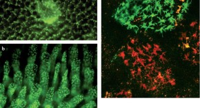 Several distinct populations of dendritic cells and macrophages are found in the intestinal lamina propria; these cells have crucial roles in both tolerogenic and inflammatory-type immune responses at the mucosa. This Review describes the recent findings that have increased our understanding of the origin and functions of intestinal mononuclear phagocytes.