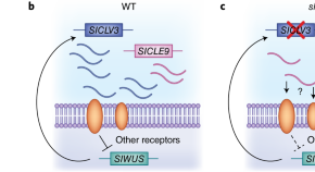 The conserved ligand–receptor pair CLAVATA1–CLAVATA3, which maintains homeostasis in shoot apical meristems, responds differently to perturbation in tomato, Arabidopsis and maize. Active compensation occurs in CLE signaling peptides in tomato, but compensation is passive in Arabidopsis.