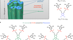 The solvent-free conversion of phthalonitrile derivatives into phthalocyanines in the bulk is described, involving a reductive cyclotetramerization step and the formation of one-dimensional single-crystalline fibres. This solvent-free autocatalytic supramolecular polymerization may enable for a sustainable fabrication of multi-block supramolecular copolymers.