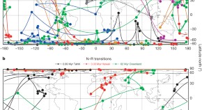 Volcanic records of the reversals of the geomagnetic field can be well matched under the assumption of a common reversal duration, and imply that the reversal process comprises three phases—a precursor, a fast polarity switch and a rebound—the properties of which have remained unchanged for about 180 million years.