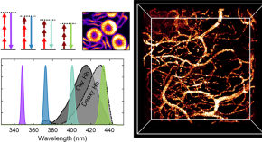 This method achieves simultaneous and spatially colocalized excitation of three fluorophores with distinct spectra, doing so via two-photon microscopy using a femtosecond laser and an optical parametric oscillator and by temporally overlapping the beams. Imaging of 'Brainbow'-labeled mouse and chicken nervous tissue and of developing fly embryos is shown.