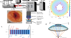 Scanning a single resonating bubble over structured samples breaks the acoustic diffraction limit. This is made possible by using a bubble enclosed in a 3D-printed cage, that can be robustly manipulated in the near-field of the sample.