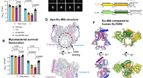 • Mycobacterium tuberculosis protein Ku is involved in DNA repair and a potential drug target. Here, using cryo-EM and complementary approaches, the authors obtain insights into Ku oligomerization and mechanisms of function in DNA synapsis.