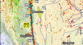 • This study shows that the 2025 Mw 7.7 Myanmar earthquake ruptured 500 km of the Sagaing Fault with nearly no shallow slip deficit, revealing that mature, linear strike-slip faults can release strain efficiently, unlike less mature faults.