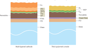 Perovskite solar cells can be damaged when partially shaded, owing to currents flowing in reverse. Two research groups have now increased the breakdown voltage of the perovskite devices (the tolerance against this reverse bias degradation), one by using multilayer charge-selective contact stacks on the cathode side, and the other by using relatively thick, dense electrodes on the anode side.