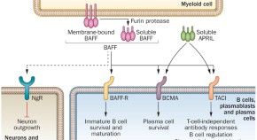 In this article the authors review the 'BAFF/APRIL system', a complex of the cytokines BAFF and APRIL, their receptors and signalling pathways. The efficacy of belimumab, an anti-BAFF biologic agent used in clinical trials for SLE, is used to develop an argument that the BAFF/APRIL system is an important regulator of autoimmunity. Future therapies for SLE could fine-tune these cytokine signalling pathways to regulate autoreactive B cell survival and autoimmunity.