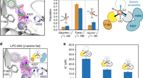 The conformational dynamics of a compound has a large effect on ligand/receptor binding. Here, the authors employ NMR spectroscopy to study ligand binding to the enzyme LpxC, discovering an inhibitor envelope that was not identifiable by crystallography and subsequently developing a highly potent inhibitor.