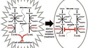 Recently discovered recurrent somatic mutations in the key metabolic enzymes IDH1 and IDH2 produce the aberrant oncometabolite 2-HG and contribute to malignant transformation of hematopoietic and glial cells. Two recent reports in Science describe the first IDH1 and IDH2 mutant-specific small-molecule inhibitors, which induce cell differentiation of myeloid leukemias and malignant gliomas.