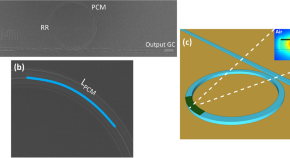 Ilias Skandalos and colleagues demonstrate a silicon-germanium quantum-confined Stark effect modulator on 8-in. silicon wafers, monolithically integrated with silicon nitride waveguides under sub-dB coupling losses. The modulator achieves a 100 Gb s−1 data rate and a >65 GHz bandwidth with <63 fJ bit−1 energy consumption.