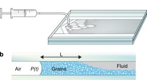 Pattern-forming processes in simple fluids and suspensions are well understood, but displacement morphologies in frictional fluids and granular mixtures have not been studied extensively. Sandneset al. consider the effects of Coulomb friction and compressibility on the fluid dynamics of granular mixtures.
