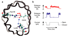 Ion-channel gating, or stochastic fluctuation between an open and a closed state, is not fully understood at the atomic level. Analysis of the bacterial channel OmpA now suggests that one mode of gating depends on the switching of a salt bridge within the pore.