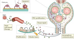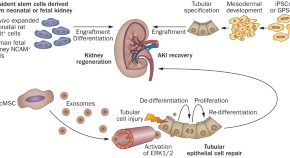 Cell therapy holds promise to enable efficient repair of the adult human kidney, which could reverse damage caused by repeated renal injury. In this Review, Bussolati and Camussi consider the latest evidence for the existence and origin of functional renal progenitor cells in adult humans and the role of these cells in renal repair. They then discuss strategies for generating renal progenitor cells from pluripotent stem cells, human fetal cells and adult renal cells that could be used for cell therapy.