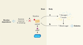 • The discovery of a signalling axis that connects nicotine responses in the brain with glucose metabolism by the pancreas sheds light on why cigarette smoking increases the risk of diabetes.