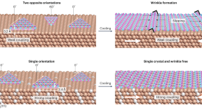 Although single-crystal (SC) 2D materials can be grown on atomic sawtooth metal surfaces, the formation mechanism during the melting-solidification process remains unclear. Here authors reveal that solidification starts at high-index facets and spreads, forming a SC atomic sawtooth surface.