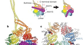 Dynein is a molecular motor involved in many cellular functions. The motor domain of dynein contains six AAA+ domains forming a ring that interacts with the motile linker domain. The structure of yeast dynein motor domain crystallized without nucleotides is now presented at 3.3-Å resolution and shows the specific contacts between linker and ring, with nucleotide interactions at the different AAA+ domains revealed by soaking experiments.