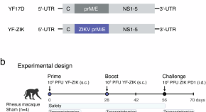 • A candidate vaccine against SARS-CoV-2 that uses the yellow fever 17D live-virus vector is highly efficacious and displays a favourable safety profile in Syrian hamster, mouse and cynomolgus macaque models.