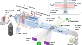 In high-power lasers, beams are expanded to the order of meters such to avoid damaging optical element, but increasingly large optics are impractical. Here, a diffraction grating based on laser-induced density modulations of a gas is shown to exhibit an enhanced damage threshold for nanosecond pulses.