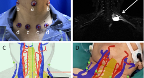 An imprinted four-fold magnetic anisotropy was observed in the amorphous ferromagnetic layer of FeRh/CoFeB heterostructures. The easy magnetization axes of the CoFeB layer are along the FeRh〈110〉 and FeRh〈100〉 directions for the epitaxially grown FeRh layer in the antiferromagnetic and ferromagnetic states, respectively. The fourfold magnetic anisotropy of the amorphous CoFeB layer is imprinted due to the interfacial exchange coupling between the CoFeB and FeRh moments from the magnetocrystalline anisotropy of the epitaxial FeRh layer, which may be applied to probe the magnetic structures of antiferromagnetic materials without using synchrotron methods.
