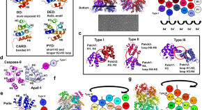 • Ha et al. present a crystal structure of mouse IRGB10, a mouse interferon-inducible GTPase that mediates bacteriolysis in cell autonomous immunity. With further mutagenesis studies, they show that IRGB10 bound to GDP forms an inactive head-to-head dimer, which changes its conformation to activate its membrane-binding and disruptive functions.