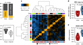 The molecular classification of endometroid ovarian carcinomas (EnOC) has not been established, preventing the development of stratified therapeutic approaches. Here the authors characterise the molecular landscape of EnOC by whole exome sequencing, identifying clinically distinct disease subtypes.