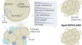 Han et al. provide a substantial contribution to our limited comprehension of the mechanisms of aging in adipose tissue. They show that, with age, increased levels of adipose CRTC2 decrease the breakdown of branched-chain amino acids and activate mTORC1. This in turn leads to increased levels of senescence-associated secretory phenotype factors, which promotes senescence and adipose dysfunction.