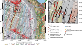 The rupture area of the 2014 Iquique earthquake offshore northern Chile was spatially limited to a region where the plate boundary is non-reflective in seismic images, indicative of low fluid pressure. In contrast, north and updip of the rupture area, a coherent highly reflective plate boundary indicates excess fluid pressure, which may inhibit strain accumulation, while strain release in the non-reflective rupture area occurs during large earthquakes.