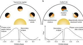Phase-resolved mid-infrared observations from JWST of the hot gas giant WASP-43b detect a day–night difference of 659 ± 19 K. Comparison with climate models shows that the observations are compatible with cloudy skies, at least on the nightside, and the lack of methane detection suggests the presence of disequilibrium chemistry.