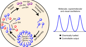 Oscillations are widespread throughout the natural world and a number of fascinating inorganic oscillating reactions are known—but the formation and control of oscillating, self-replicating synthetic systems has remained challenging. Now, it has been shown that chemically fuelled oscillations within a network of organic replicators can drive supramolecular assembly and disassembly.