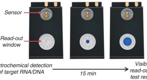 • Point-of-care analytical devices are of interest for diagnostic applications where larger scale laboratory instruments are not feasible or available. Here, the authors present a direct read-out colorimetric sensor which uses catalytic gas production to visualize picomolar concentrations of DNA.