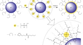 Bimetallic core@shell nanoparticles often have properties that are different from those of single-metal or alloy nanoparticles. Here, a route to such nanoparticles that binds the second metal to the core surface prior to reduction is described. The unique catalytic properties of the nanoparticles are demonstrated in the selective production of chloroaniline.