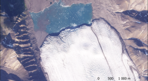 The Recherchebreen glacier in Svalbard, which had been advancing at 1200 m since 2018, abruptly stopped in June 2020, forming a rapid delta system with a daily progradation rate of 7 meters, suggesting drainage reorganization at the end of the surge, according to analysis of the changes in the coastal zone of the Recherchebreen glacier.